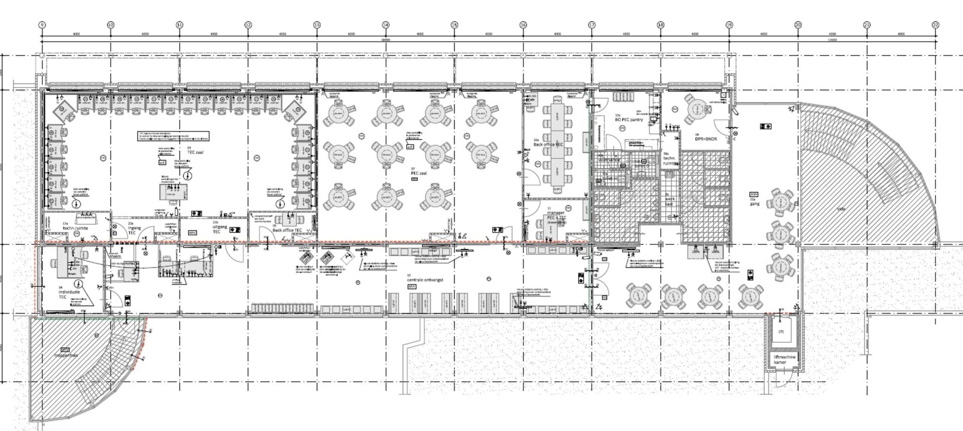 entree op de begane grondkabelgoten met elektra- en databekabeling*